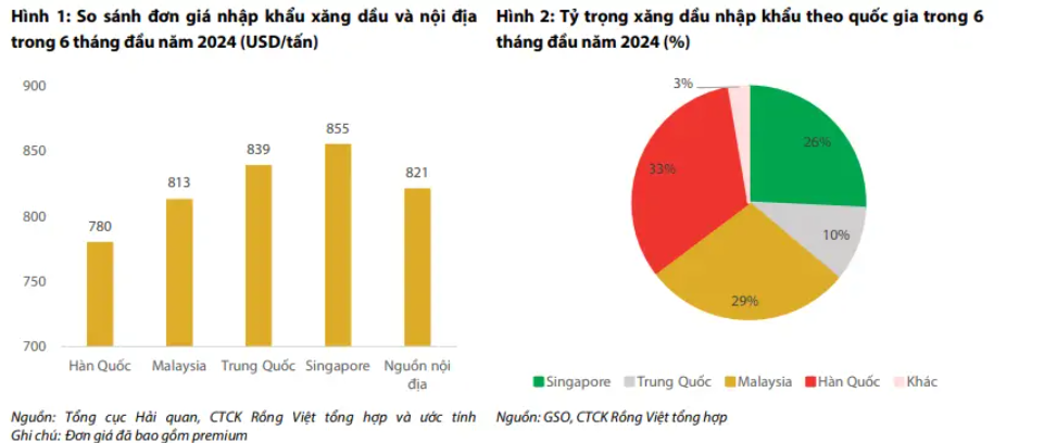 Đối với nguồn cung xăng dầu, hiện tại hai nhà máy lọc dầu Bình Sơn và Nghi Sơn cung cấp khoảng 60% nhu cầu trong nước, còn lại là nhập khẩu, chủ yếu từ Hàn Quốc, Singapore và Malaysia, là các quốc gia áp dụng các Hiệp định thương mại (ATIGA, FTA Việt Nam – Hàn Quốc) với thuế nhập khẩu xăng dầu bằng 0%. Mặc dù nguồn cung xăng dầu từ Hàn Quốc có ưu thế về giá so với các nước khác, các nhà cung cấp từ quốc gia này chỉ bán các lô hàng với số lượng lớn. Trong khi đó giá xăng dầu nhập từ Singapore cao nhất nhưng nhờ vị trí thuận lợi, các thương nhân đầu mối có thể tiết kiệm chi phí vận chuyển và linh hoạt về số lượng nhập khẩu.