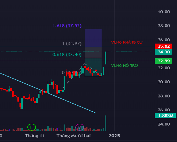 Tuy nhiên, chúng tôi vẫn sẽ đưa ra giá mục tiêu cho các NĐT ưa thích các DN đang trong giai đoạn khó khăn nhưng có nhiều tiềm năng tăng trưởng trong trung hạn là 37,400 VND/cổ phiếu (+10% so với giá đóng cửa ngày 25/12/2024) và trong dài hạn là 41,150 VND/cổ phiếu (+20% so với giá đóng cửa ngày 25/12/2024) tức là vùng đỉnh cũ vào cuối Q3/2024.