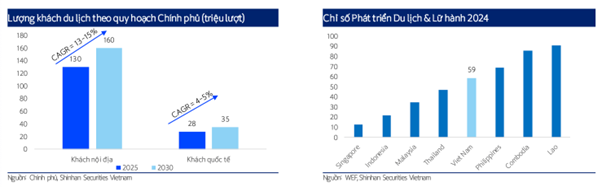 - Theo xếp hạng chỉ số phát triển du lịch & lữ hành 2024, Việt Nam xếp thứ 59/119 toàn cầu và xếp thứ 5 trong khu vực Đông Á - TBD cùng với mục tiêu của Thủ tướng Chính phủ phấn đấu lĩnh vực du lịch đóng góp 13-14% trong GDP giai đoạn 2025 - 2030 sẽ là động lực quan trọng để thúc đẩy tiêu dùng và quảng bá các mặt hàng F&B Việt Nam ra thế giới